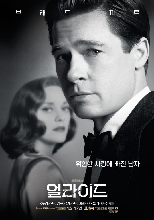한편 올 겨울 역대급 비주얼 커플의 탄생을 알리는 브래드 피트와 마리옹 꼬띠아르의 매혹적인 비주얼은 보는 순간 숨을 멎게 만들며 눈을 뗄 수 없는 카리스마로 시선을 압도해 영화 <얼라이드>에서 보여줄 역대급 케미스트리를 기대케 한다. 특히 로버트 저메키스 감독은 "로맨스 영화를 찍을 때 감독의 가장 큰 바람은 남녀배우의 케미인데, 브래드와 마리옹은 처음부터 완벽한 케미를 보여줬다. 두 사람이 카메라에 잡힌 모습만으로도 그림이었다. 그리고 연기에 돌입하는 순간 우리가 원하는 감정 연기가 나왔다. 두 배우의 케미는 정말 행운이었다"고 전해 역대급 비주얼로 강렬한 케미스트리를 선사할 브래드 피트와 마리옹 꼬띠아르의 연기에 더욱 기대감을 고조시키고 있다.