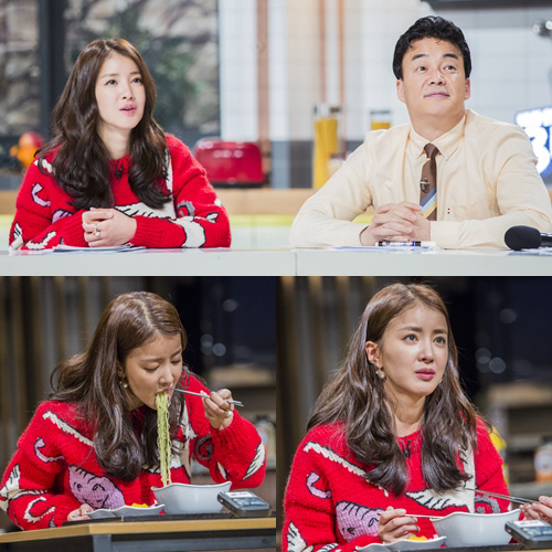 결국 라면 시식 기회를 얻게 된 이시영은 시식 테이블에 앉자마자 '백종원의 3대 천왕' 대표 면치기선수 김준현을 향해 "나도 면치기에 도전하겠다"며 승부욕을 내비췄다. 의욕적으로 라면 면발을 집은 이시영은 뜨거운 김을 잠깐 식힌 후 거침없는 흡입을 시도했고, 결국 지나친 승부욕으로 라면과 함께 머리카락까지 먹기도 했다. 이시영의 승부욕에 김지민은 "매생이 일수도 있으니까 그냥 같이 먹어라"고 덧붙였고, 그럼에도 불구하고 이시영은 멈출 수 없는 먹방을 선보였다.