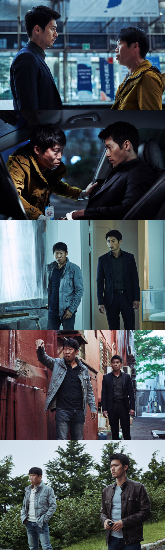 이어 각자 한 쪽 손에 찬 수갑 때문에 의도치 않게 좁은 조수석에서 밀착하게 된 두 남자의 눈빛 교환이 담긴 스틸은 보는 이들까지 숨 죽이게 하는 어색한 분위기로 참을 수 없는 웃음을 전한다. 여기에 완벽한 수트핏을 보여주는 북한형사와 편안한 스타일로 친근함을 자아내는 남한형사의 모습은 어우러지지 않는 극과 극 캐릭터를 보여준다. 또한, 일촉즉발의 상황 속 한 쪽 손에 야구배트를 들고 있는 남한형사와 날 선 눈빛을 보여주는 북한형사의 모습은 예측할 수 없는 팀플레이를 예고하며 궁금증을 증폭시킨다.