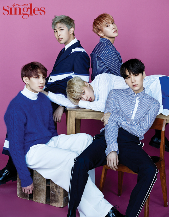 [스포츠조선 조윤선 기자] '싱글즈'가 올해 정규앨범 'Wings' 로 끊임 없이 1위 행진을 하며 대세 아이돌 반열에 오른 방탄소년단의 화보를 공개했다.