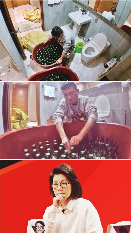 그 속의 물건은 다름 아닌 300병이 넘는 빈 소주병이었다. 김건모는 화장실에 앉아 그동안 모아온 300개의 소주병 모두를 정성스럽게 세척하기 시작했다.