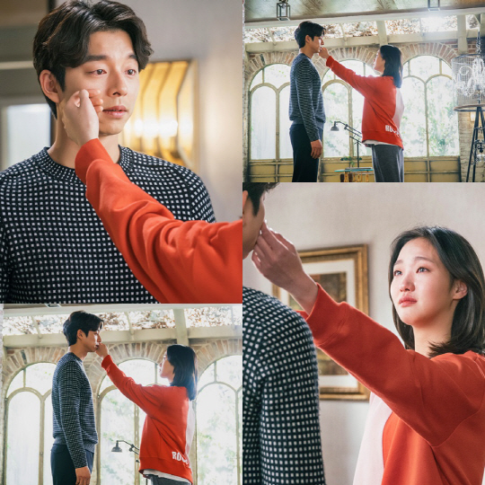 무엇보다 공유와 김고은이 서로를 마주보고 선 채로 눈물을 흘리고 있는 모습이 포착돼 관심을 집중시키고 있다. 눈물방울을 떨구는 공유를 보면서 김고은도 함께 눈물보가 터져버리는 장면. 북받치는 감정에 눈물을 흘리던 김고은은 담담하면서도 털털하게 공유의 눈물을 손등으로 쓱 닦아주며 위로를 건네고 공유는 김고은의 손길에 그저 바라보기만 한다. 이와 관련 공유가 갑작스레 눈물을 흘리게 된 이유는 무엇일지, 도깨비 신부 김고은에게 위로 받게 된 사건은 어떤 것일지 궁금증이 증폭되고 있다.