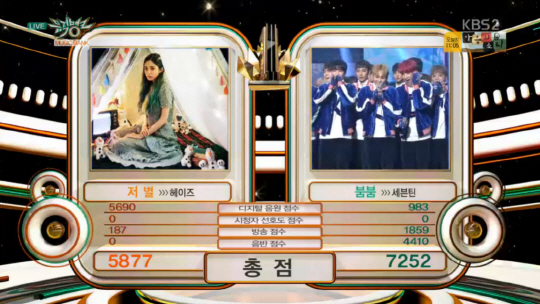 쉽지 않은 상대였지만 세븐틴은 '신흥 대세 파워'를 보여주며 컴백 일주일만에 첫 공중파 1위를 차지했다. 수상 후 세븐틴 멤버들은 환한 웃음으로 기쁨을 표현했다. 멤버들 중 호시는 "캐럿들 정말 감사드립니다. 사실 팬분들이 있기에 여기까지 올라올 수 있었다"라며 감동의 수상 소감을 밝혔다.