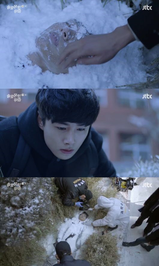 학교를 떠난지 2주 후, 배준영(서지훈)은 등교 중에 눈 속에 파묻힌 이소우(서영주)의 시체를 발견하고 깜짝 놀란다. <스포츠조선닷컴>