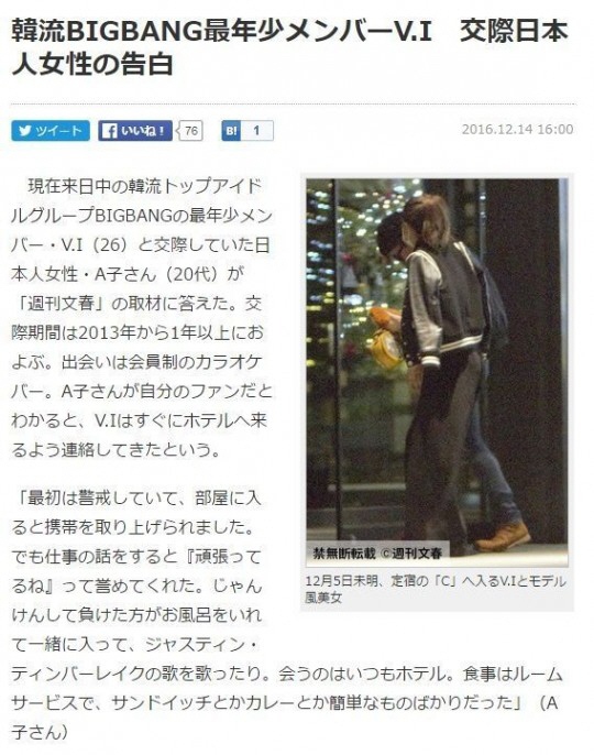 주간문춘은 승리가 과거 만났던 것으로 추정되는 다른 여성의 인터뷰도 보도했다.