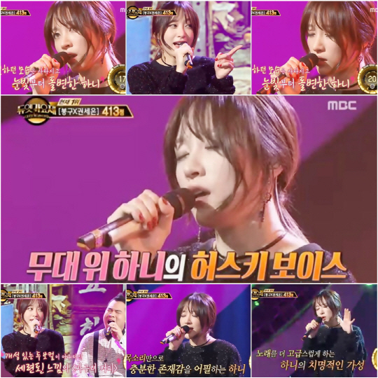 한편 이날 하니가 출연한 '듀엣 가요제'에는 휘성, 김현정, UV뮤지, 솔비, KCM, 길구봉구의 봉구가 출연했다.