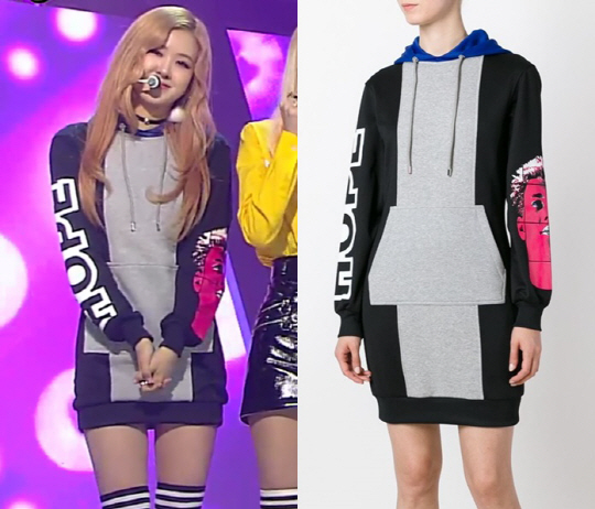 카리스마 있는 그래픽이 포인트인 후디 원피스다. 20대 소녀들 사이에서 인기 있는 하의 실종 패션에 색다른 무드를 더해보고 싶다면 로제의 아이템을 살펴보자. 매 시즌 독특한 콘셉트로 화제가 되는 모스키노(Moschino) 스웨트 셔츠 드레스로, 영국 아티스트 길버트&조지의 일러스트를 담았다. 독특한 콘셉트의 예술을 담아낸 스트리트 웨어 역시 트렌디한 젊은 층의 개성 있는 취향 중 하나로 본다면 패션을 더욱 재미있게 즐기는 방법이 되겠다.