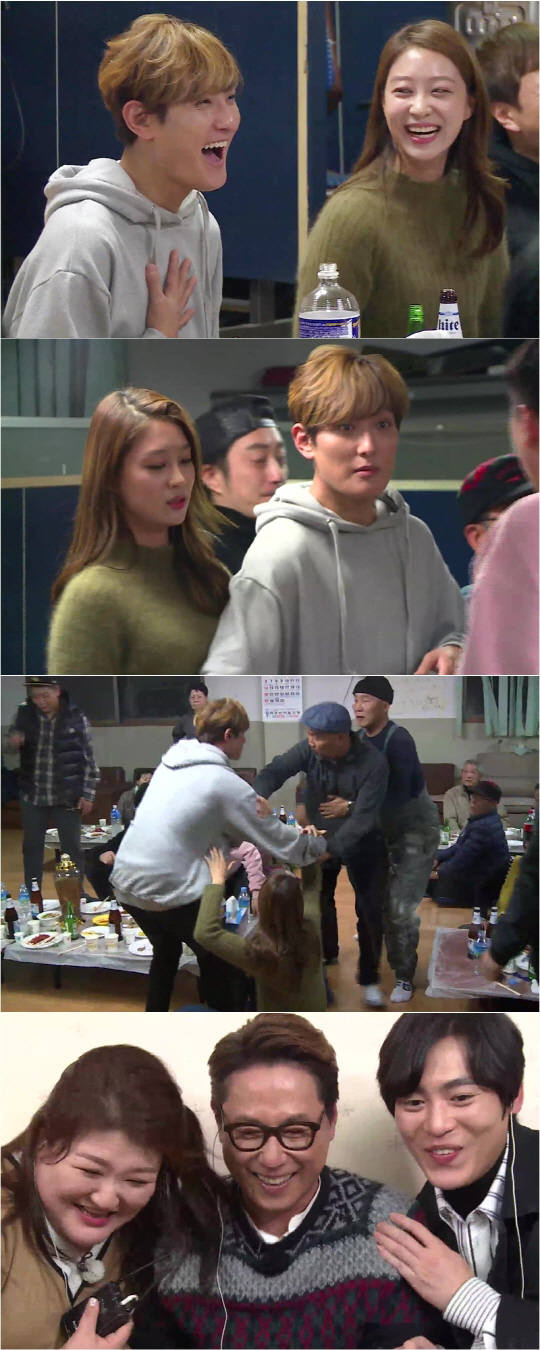웃음꽃이 활짝 핀 그의 표정이 화기애애한 분위기를 짐작케 하는데, 이는 강타가 절친 이진호 아버지의 이장 취임식에서 이상형을 만나 즐거운 대화를 나누고 있는 것이다.