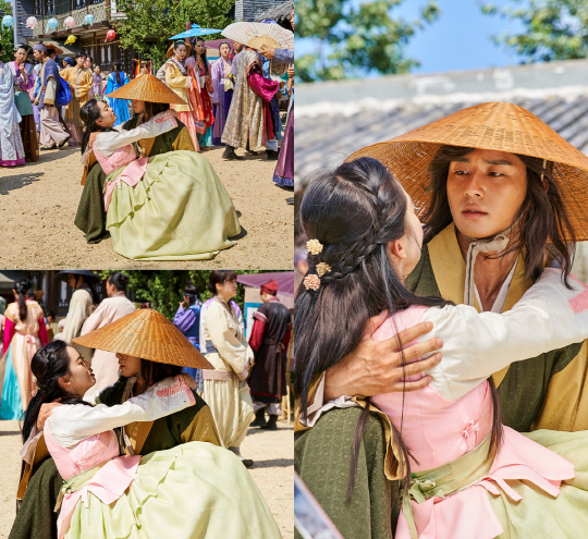 사진 속 박서준과 고아라는 밝은 햇살이 비추는 왕경 거리 한 가운데에서 마주한 모습이다. 신분을 감추려는 듯 삿갓을 쓴 박서준은 어떤 이유에서인지 다리에 힘이 풀려 주저 앉은 고아라를 품에 안고 있다. 첫 만남임에도 한껏 가까운 두 사람의 거리는 사진만으로도 심쿵을 유발하기에 충분하다.