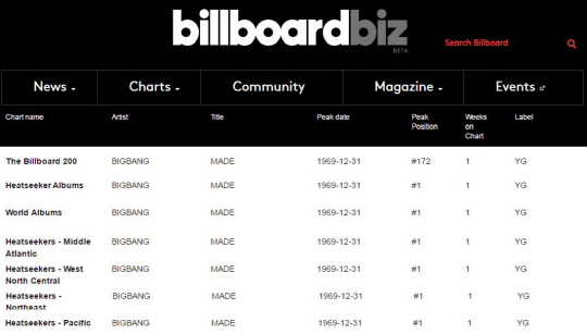 빅뱅은 앨범 판매량, 트랙 및 스트리밍 앨범 등의 수치를 기반한 미국에서 가장 인기 많은 곡들을 매주 선정하는 빌보드 메인 차트, '빌보드 200'차트도172위로 진입, 화제를 모았다. 빅뱅은 'Alive' 앨범 이후로 4년여 만에 2번째로 이 차트에 이름을 올리게 됐다.