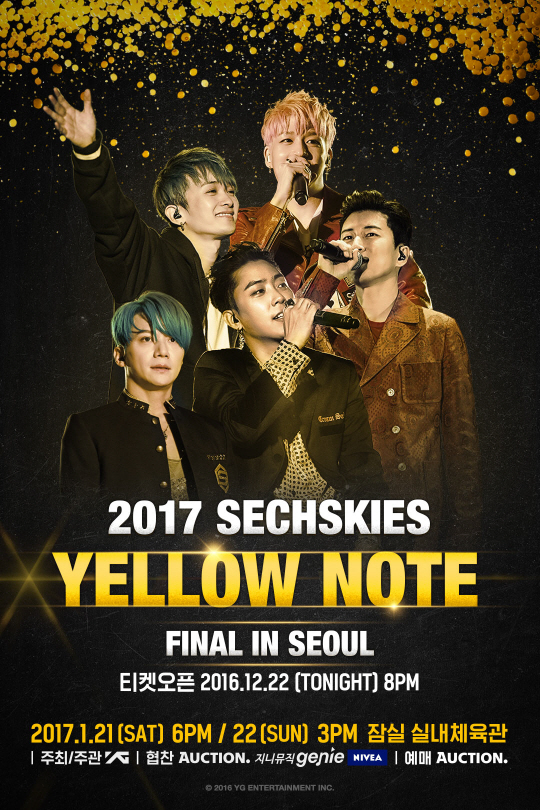 뿐만 아니라 지난 9월 서울 공연 당시 체조경기장에서 이틀간 2만석의 규모로 진행했음에도 불구하고 티켓 대란이 일었던 만큼 이번 '2017 SECHSKIES [YELLOW NOTE] FINAL IN SEOUL'도 치열한 티켓 예매 전쟁을 예고하고 있다.