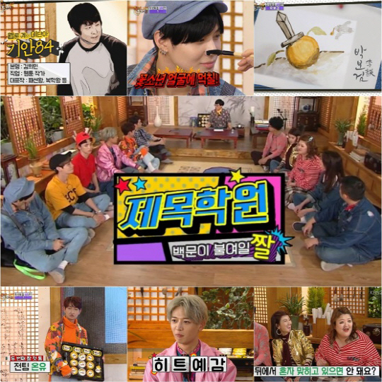 '제목학원'은 즉석에서 그린 짤(그림이나 사진을 뜻하는 인터넷 신조어)의 제목을 맞추는 일종의 넌센스 퀴즈 코너. 문제 출제자로 웹툰계의 이단아 기안84가 출제자로 출연해 눈길을 모았다. 기안84가 색다른 시각으로 단어를 설명하면 게스트가 그림 속 단서를 해석해 답을 맞추는 형식이다.