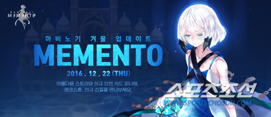 넥슨의 장수 RPG 마비노기에 겨울 시즌 대규모 업데이트 '메멘토'가 추가됐다. 마비노기의 7대 개발 디렉터인 박웅석 디렉터가 진두지휘한 이번 업데이트는 고레벨의 유저들이 재미있게 즐길 수 있는 콘텐츠를 선보이고, 그에 어울리는 아름다운 시나리오를 내세운 것이 특징이다.