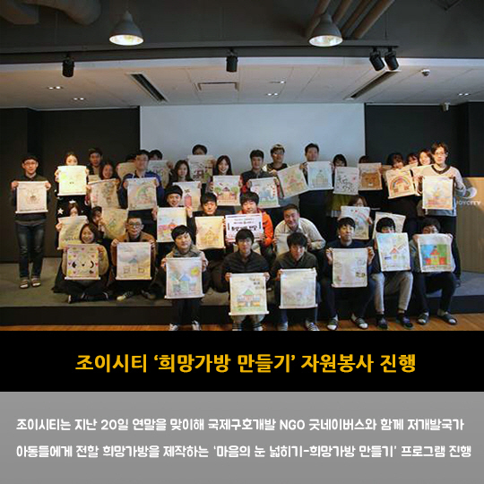 - 조이시티 '희망가방 만들기' 자원봉사 진행