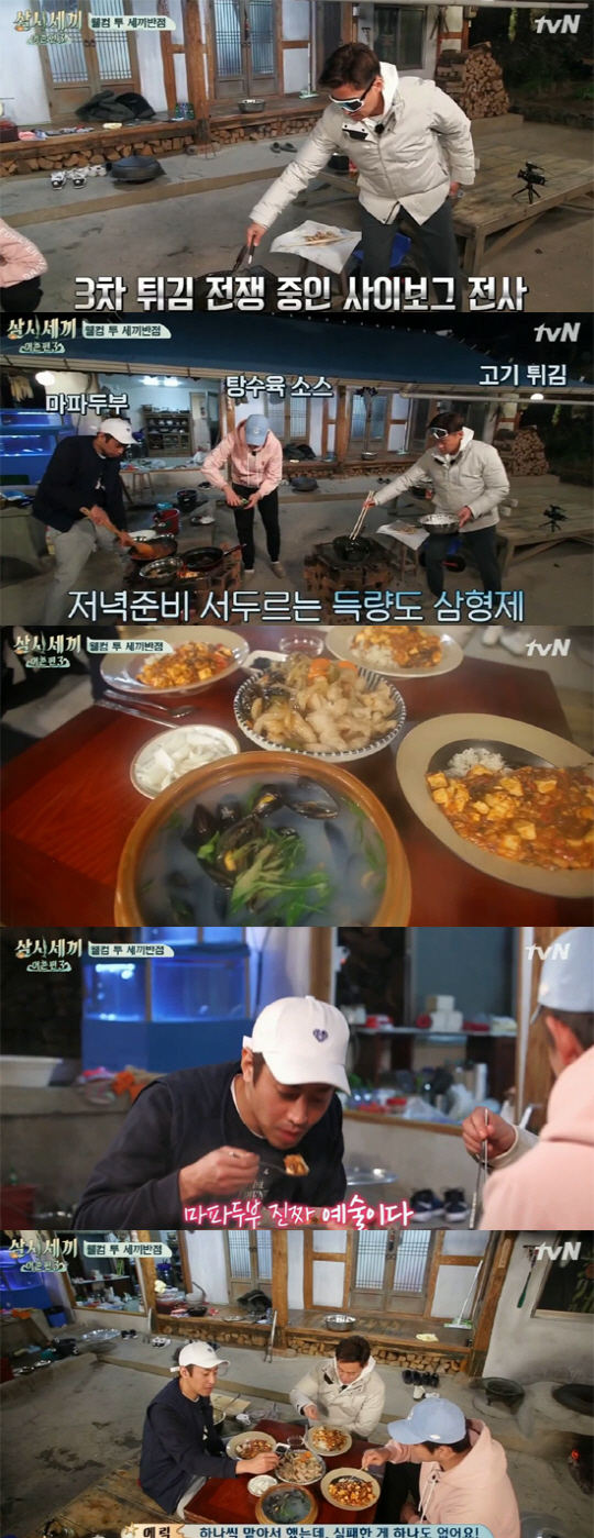 식사 예상시간 밤 10시. 빠듯한 시간에 에릭은 마파두부를, 이서진은 탕수육을, 윤균상은 탕수육 소스와 홍합탕을 각자 맡아 요리에 들어갔다.