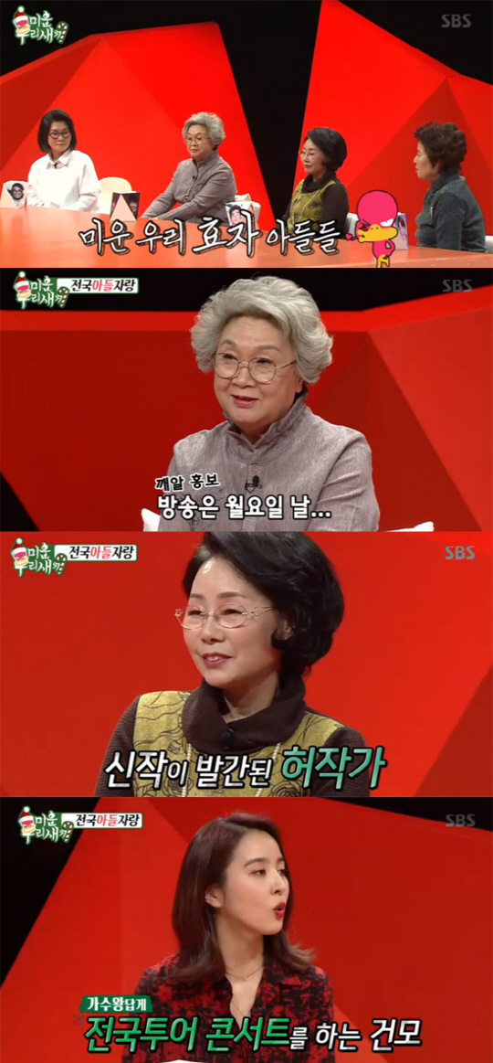 토니안 엄마는 "조금 전에 아들에게 전화했는데 여행을 보내준다고 하더라"라고 자랑했고, 박수홍 엄마는 "얼마전에 SBS 새 예능 '씬스틸러' 단독 MC를 맡았다"고 기뻐했다. 이에 허지웅 엄마는 "얼마전에 아들이 책을 출간했는데 베스트셀러 1위를 찍었다"며 아들의 책 이름까지 깨알같이 홍보했다.