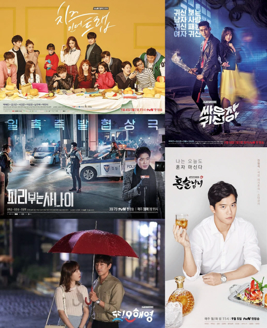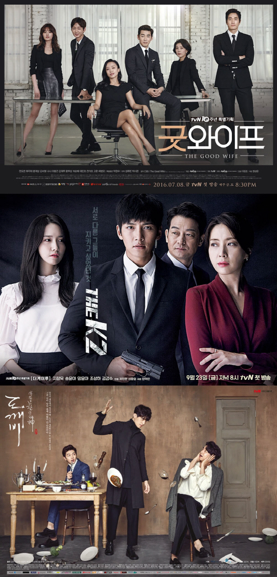 '더 케이투(THE K2)'는 지창욱 송윤아의 호연에 힘입어 최고 6.636%, 평균 4.86%의 시청률을 기록했다. 대미는 '쓸쓸하고 찬란하神-도깨비(이하 도깨비)'가 장식했다. '도깨비'는 '태양의 후예'를 만든 이응복PD와 김은숙 작가가 의기투합한데다 공유 이동욱 김고은 유인나 육성재(비투비)의 캐스팅으로 방영 전부터 화제를 모았던 작품이다. 그 기대에 걸맞게 '도깨비'의 인기는 방송 시작과 동시에 파죽지세로 치고 올라갔다. 6회까지의 평균 시청률은 10.2%. 이러한 속도라면 역대 tvN 드라마 흥행 순위까지 바뀔 수 있을 전망이다.