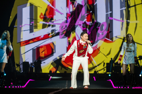 '챔피언'으로 오프닝을 장식한 싸이는 이어 'DADDY', '연예인' 등의 무대로 공연장의 열기를 뜨겁게 달구며 폭발적인 에너지를 보였다.