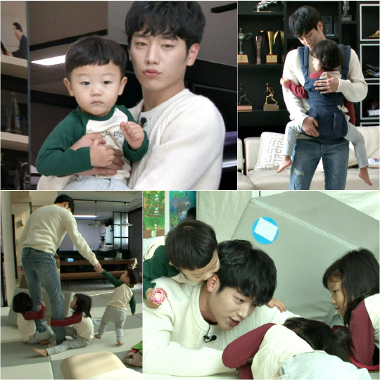 삼 남매에게 둘러싸여 육아의 고충을 온몸으로 느끼고 있는 모습이다. 서강준의 다리에 삼 남매가 대롱대롱 매달려 있는 것. 서강준은 한 발짝도 앞으로 나가지 못한 채 삼 남매에 둘러싸여 땀을 뻘뻘 흘리고 있어 웃음을 선사한다.