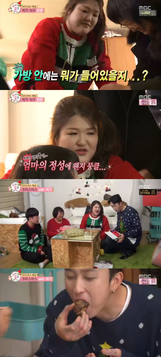 24일 방송된 MBC '우리 결혼했어요'에서 이국주 슬리피 부부는 크리스마스를 맞아 이국주의 어머니와 동생을 집으로 초대했다.