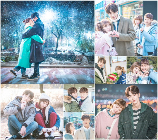 무엇보다 방송 이후 숱한 화제를 낳았던 이성경과 남주혁의 '눈발 키스' 비하인드컷은 동화의 한 장면을 보는 듯한 환상을 불러일으키고 있다. 흩날리는 눈발 아래 포옹하며 미소 띈 얼굴로 서로를 응시하고 있는 두 사람의 모습이 흐뭇함을 자아내는 것. 반짝이는 야경을 배경으로 이성경이 남주혁의 어깨에 기대 눈을 감고 있는 모습과 석양을 뒤로하고 붕어빵을 친구 삼아 깜찍한 표정을 짓고 있는 두 배우의 '황금 케미'는 카메라 뒤에서도 빛나는 우정을 보여주고 있다.