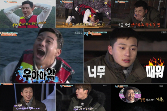 [스포츠조선 박현택 기자] 박서준이 입수부터 수상취침까지 모든 복불복에 당첨되는 불운에 휘말리며 '리틀 구탱이'에 올랐다.