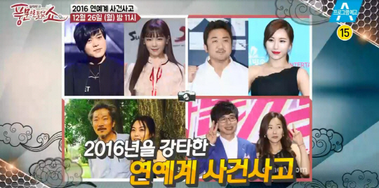 최근 <풍문쇼> 녹화에선 패널들이 '2016 연예계 사건사고'를 주제로 올 한 해 연예계를 뒤흔든 뜨거운 풍문들에 대해 이야기를 나눴다.