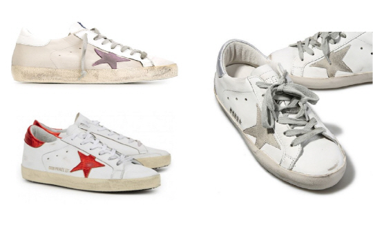 골든구스는 올 한해 모델, 셀럽, 패션피플의 데일리 스니커즈로 큰 사랑을 받은 아이템이다. 전체적인 실루엣은 평범한 스니커즈 같지만 골든 구스의 시그니쳐는 바로 별 모양. 신발 가운데 박혀있는 별 로고와 새 제품임에도 불구하고 군데 군데 보이는 데미지가 골든구스의 특징이다.