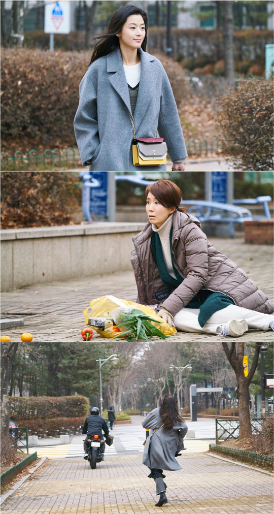 [스포츠조선닷컴 이지현 기자] '푸른 바다의 전설' 전지현과 나영희의 임팩트 강한 첫 대면 스틸컷이 공개됐다. 소매치기를 당해 길에 넘어진 나영희와 그녀를 도와주기 위해 혼신의 힘을 다해 전력 질주하는 전지현의 모습은 이목을 집중시키고 있다.
