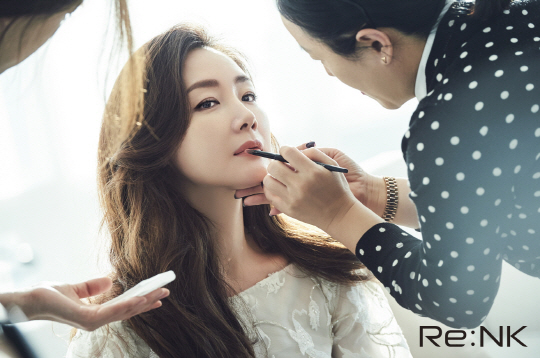 최지우는 최근 모델로 활동하고 있는 뷰티 브랜드 리엔케이의 2017 S/S 시즌 광고 촬영을 진행했다.