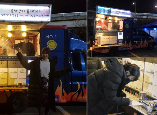 [스포츠조선닷컴 이지현 기자] 배우 신주아의 남편 쿤서방이 JTBC 맨투맨 배우들과 스탭을 위해 촬영장에 깜짝 분식차를 선물했다.