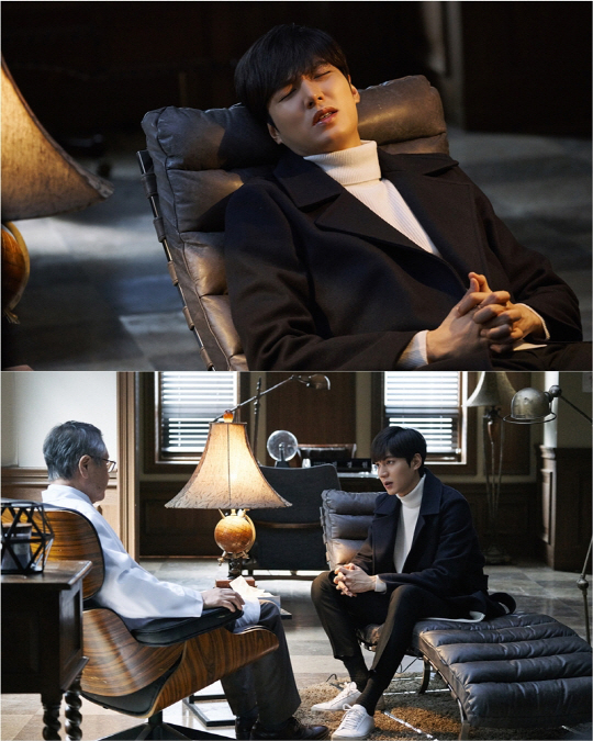'푸른 바다의 전설' 측은 28일(오늘) 13회 방송을 앞두고 최면에 빠진 허준재(이민호 분)의 사진을 공개했다. 사진 속 준재는 진교수(이호재 분)의 연구소를 방문해 그와 심각하게 대화를 나누고, 최면에 빠진 후에는 얼굴을 찡그리는 등 고통을 느끼고 있기에 안타까움을 유발함과 동시에 긴장감은 최고치를 달리고 있는 것.