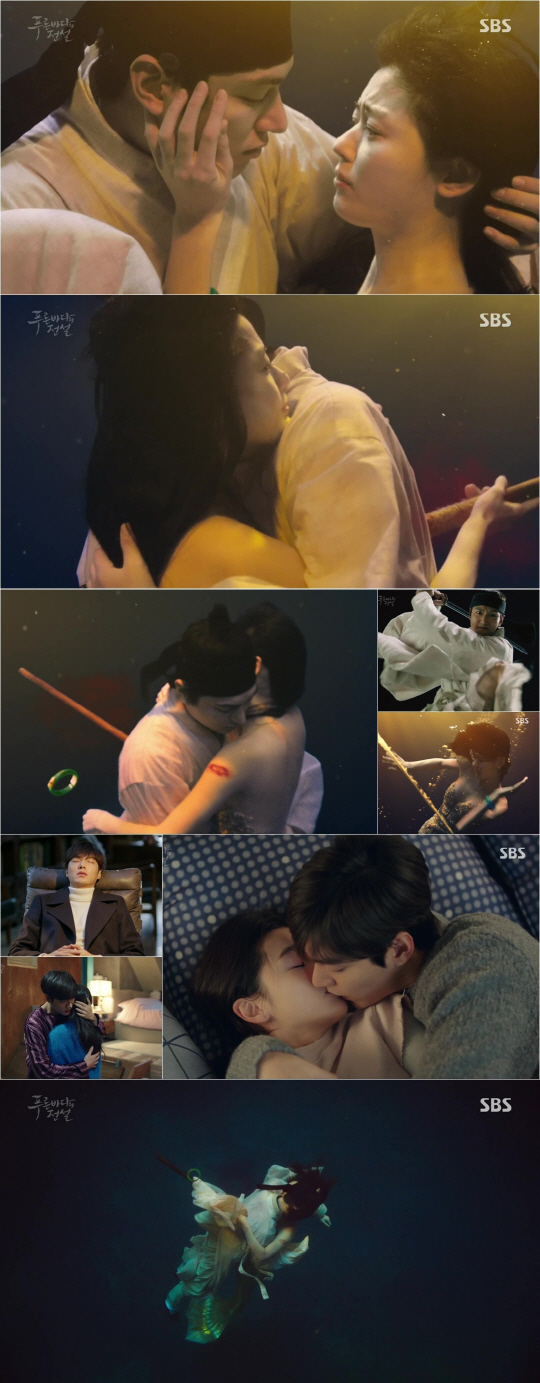 우선 현생에서의 허준재(이민호 분)는 운명으로 다가온 인어 심청(전지현 분)을 지키기 위해 노력했는데, 심청의 속마음을 듣지만 이를 내색하지 않은 준재로 인해 심쿵한 에피소드들이 만발했다. 준재는 전생과 관련된 악몽을 꿨고 "안돼 세화야"라며 잠에서 캤다. 자신이 전생의 세화인지 모르는 청은 그녀를 질투했고, 청의 질투에 준재는 그녀를 안심시켰다. 인터넷으로 말을 공부한 청은 "개 좋아"라며 귀엽게 대꾸해 웃음을 자아냈다. 갑작스런 준재의 키스에 청은 침대에 누워 "아까 그거.."라며 그에게 말을 건넸고, 준재는 그녀에게 또 한번 뽀뽀로 응대해 청을 기쁘게 했다.