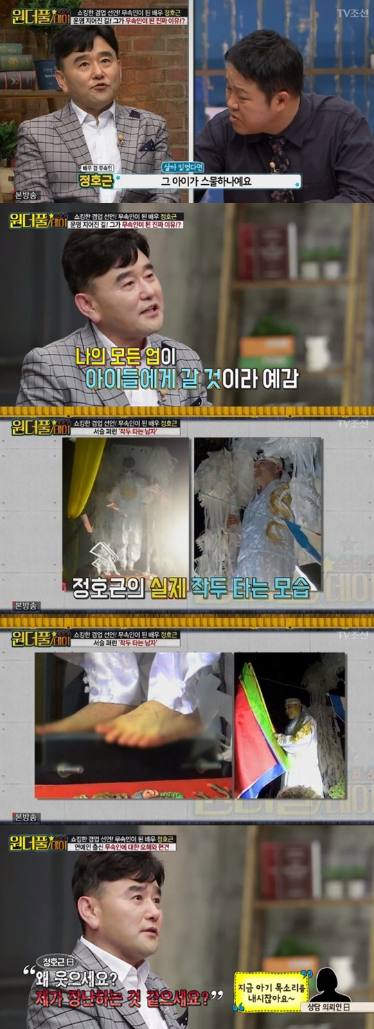 지난 27일 방송된 TV조선 '원더풀데이'에서는 최근 신내림을 받고 무속인이 된 배우 정호근이 출연했다.