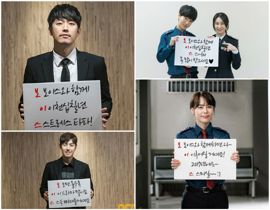 이와 관련 OCN '놓치지 말아야 할 소리-보이스' 배우들이 저마다 판넬을 들고 새해 인사 3행시를 전해 시선을 끌고 있다. 오는 1월 14일 첫 방송을 앞두고 밤낮없이 촬영에 매진하면서도 시청자와 팬들을 위해 작은 이벤트를 준비한 것. 환한 표정으로 새해 인사말이 담긴 판넬과 함께 사진 촬영에 나선 배우들은 2017년을 맞는 시청자들에게 자신들의 진심이 전해지기를 간절히 기원했다.