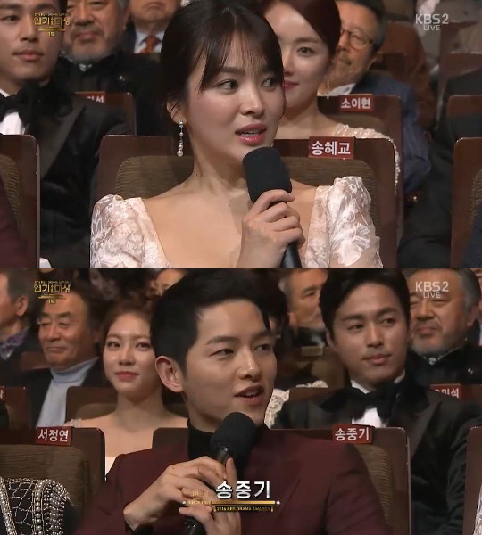 [스포츠조선 조윤선 기자] 배우 송혜교와 송중기가 대상 질문을 받고 솔직하게 답했다.