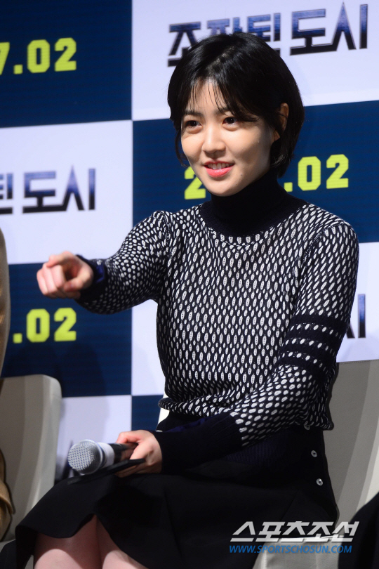 배우 심은경이 9일 오전 서울 압구정 CGV에서 열린 영화 '조작된 도시' 제작발표회에서 소감을 말하고있다.
