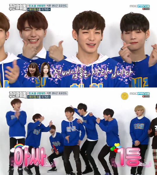 빅톤의 직속선배 '에이핑크를 이겨라'에서는 매빌이 계주가 펼쳐졌다. 비장한 각오를 다진 빅톤의 활약을 남달랐다. 몸을 사리지 않는 열정으로 결국 1등했다.