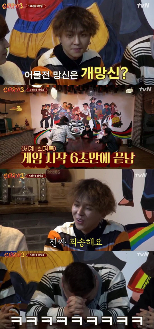 하지만 게임은 시작 6초 만에 끝났다. 첫 번째 주자 규현은 '서당개 삼 년이면 풍월을 읊는다'를 무사히 통과했다. 두 번째는 송민호 차례. 신서유기 막내는 제작진이 "어물전 망신은~?"이라고 질문하자 "개망신"이라고 답했다. 순간, 웃음바다가 됐다.