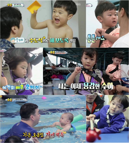 모두 수아가 울 거라고 예상했지만 입을 꾹 다물고 버티던 수아는 카메라를 보며 "헬로우" 인사까지 하는 여유를 보여 보는 이들을 깜짝 놀라게 했다. 수아의 성장은 뿌듯함 그 자체였다.