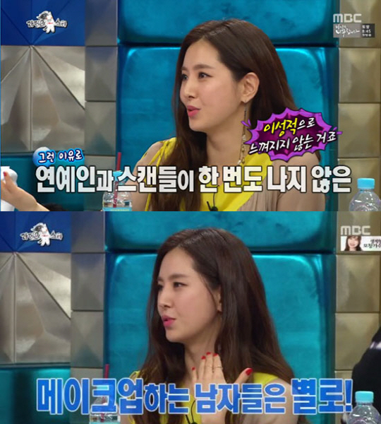 이에 한채아는 "배우들은 섬세하지 않나. 그리고 개인적으로 메이크업 하는 남자 안 좋아한다. 남자가 거울 보는 것도 좋아하지 않는다"고 설명했다.