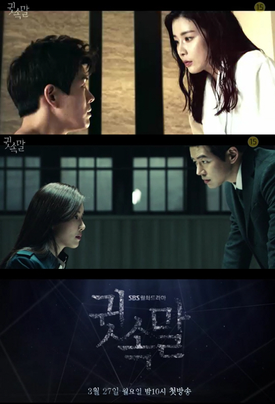 한편 SBS 새 월화드라마 '귓속말'은 '황금의 제국', '추적자'의 박경수 작가와 '너희들은 포위됐다', '패션왕'의 이명우 감독이 '펀치'에 이어 다시 의기투합한 작품으로, 이보영, 이상윤, 권율, 박세영, 김갑수, 김홍파, 김해숙, 강신일, 김창완, 원미경 등 탄탄한 출연배우 라인업을 자랑한다. '피고인' 후속으로 오는 3월 27일 오후 10시 첫 방송된다.