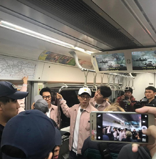 이들은 서울 지하철에서 미션을 촬영하면서 송지효, 지석진과 이동 중인 모습이 고스란히 중계됐다.