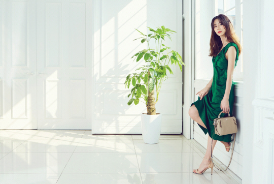 또한 박수진은 세련된 그린 컬러의 원피스에 고급스러운 소재와 자연스러운 실루엣이 멋스러운 에트나 숄더백을 매치하여 청초하고 우아한 분위기를 자아냈다.