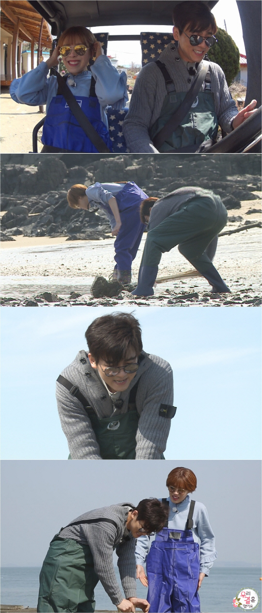 [스포츠조선닷컴 정유나 기자] '우리 결혼했어요' 최민용-장도연이 밥벌이를 위해 갯벌로 나간 모습이 포착돼 눈길을 끈다. 커플 작업복을 맞춰 입은 두 사람은 개불을 잡기 위해 폭풍 삽질도 마다하지 않은 것으로 알려져 더욱 궁금증을 증폭시키고 있다.