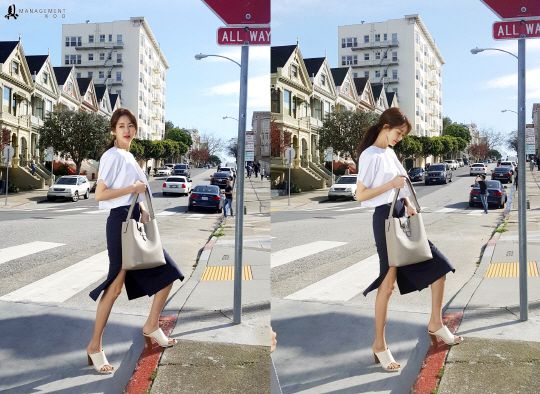 이요원은 원조 도시녀답게 특유의 여성미와 도회적인 매력을 발산하며 샌프란시스코 거리를 환하게 밝혔다.