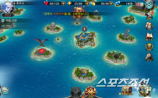 스테이지 공략 > 천공의 성 콘텐츠 해방 > 경쟁 콘텐츠 > 실시간 레이드 등으로 이어지는 일반적 흐름이다. 여기에 과거 넷마블게임즈의 콘(KON)에 등장했던 맵을 직접 제작해 공방전을 즐겼던 콘텐츠도 담겨 있다. 맵에 자신의 영웅과 기믹을 배치에 다른 유저와 경쟁하면서 자원을 획득하는 방식이다.