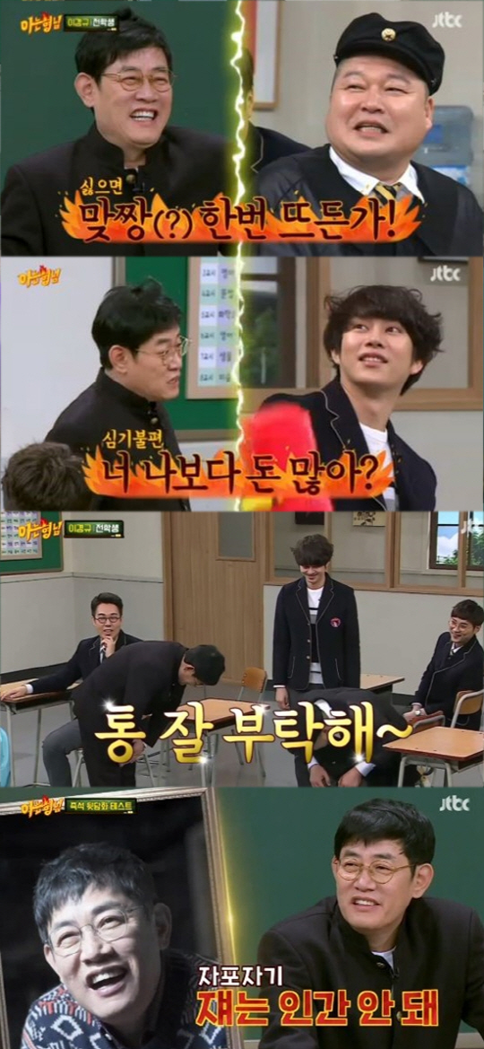 이를 들은 김희철은 '한끼줍쇼'를 언급하며 약을 올렸고, 결국 이경규는 "너 몇살이야"라며 버럭했지만 이마저도 김희철은 "게맛살"이라고 답해 이경규를 드러눕게 만들었다.