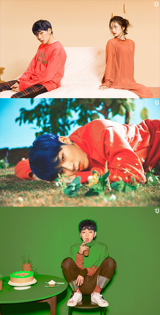 가장 눈길을 끄는 사진은 지코의 블루톤의 헤어스타일로, 이제 막 솟아난 새싹을 바라보며 몽환적인 눈빛으로 카메라를 응시하고 있다.