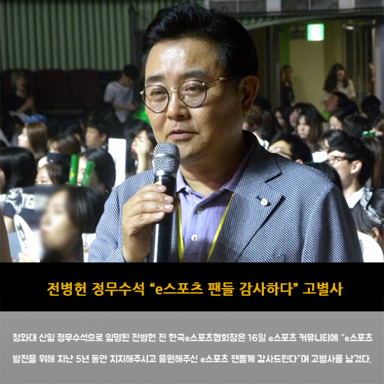 - 전병헌 정무수석 "e스포츠 팬들 감사하다" 고별사